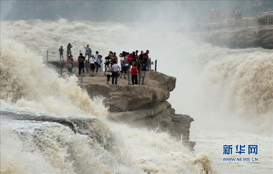 As the warm weather has picked up recently, a surge of water has fattened the roaring downpour at Hukou Falls, which sits on the Yellow River at the junction between Yichuan county, Shaanxi province, and Ji county, Shanxi province. At this point, the Yellow River's waters dash down in torrents, wetting the throngs of visitors that come to see the falls in clouds of mist. (Photo/Xinhua)