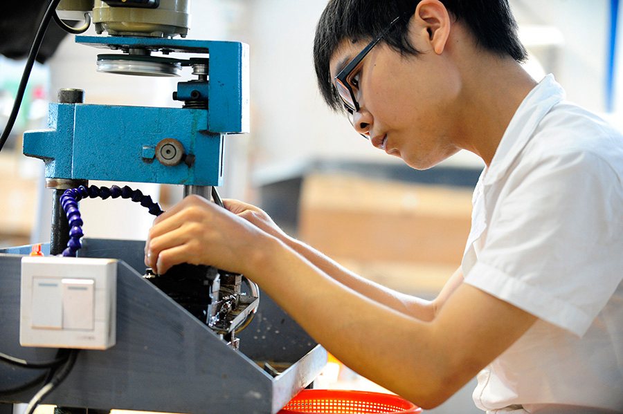 A craftsman polishes a piece of jade stone at a workshop in Baokang county, Hubei province.(Xinhua/ Hao Tongqian)
