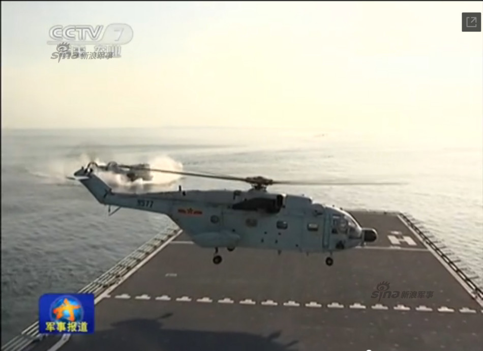 A carrier based helicopter is in the actual-combat training.