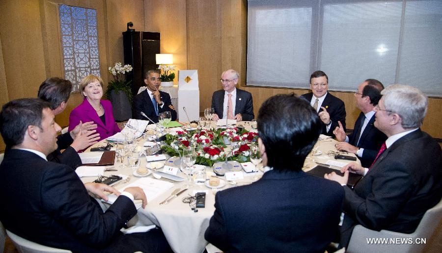 Leaders join the official dinner during the G7 summit in Brussels, Belgium, June 4, 2014. (Xinhua/The Council of the European Union)