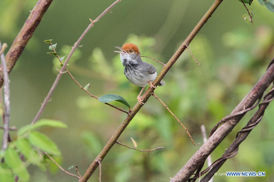 The picture released by the World Wildlife Fund (WWF) shows a new species of Cambodian Tailorbird, which was discovered in Phnom Penh, Cambodia in 2013. A giant flying squirrel, a skydiving gecko and an eyeless cave-dwelling spider are among the 367 new species that have been discovered in the Greater Mekong region in the past two years, the World Wildlife Fund (WWF) said in a statement on Thursday. (Photo/Xinhua)