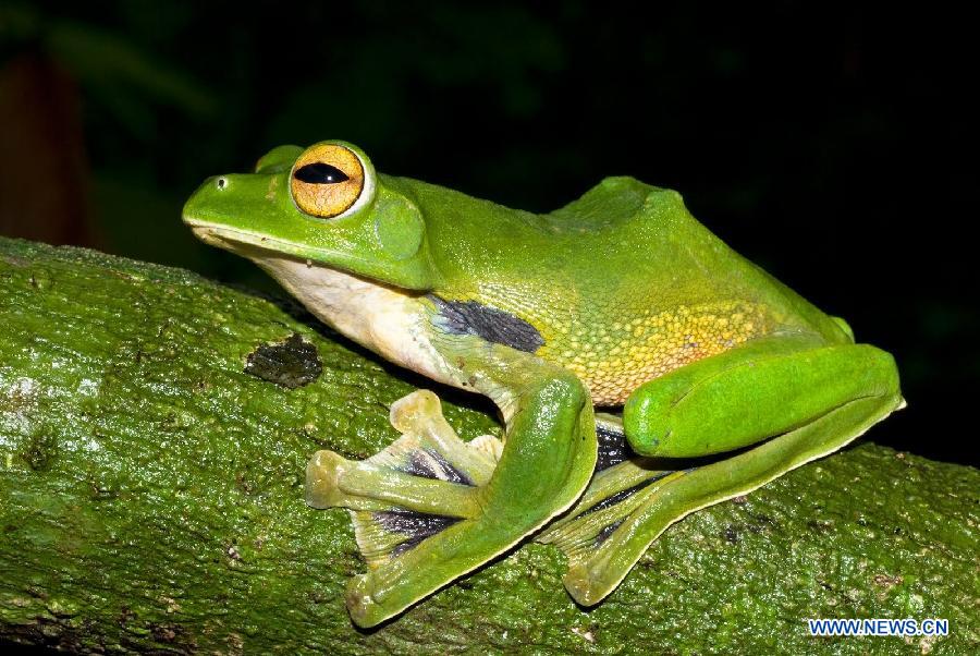 The picture released by the World Wildlife Fund (WWF) shows a new species of Helen's Flying Frog in Vietnam. A giant flying squirrel, a skydiving gecko and an eyeless cave-dwelling spider are among the 367 new species that have been discovered in the Greater Mekong region in the past two years, the World Wildlife Fund (WWF) said in a statement on Thursday. (Photo/Xinhua)