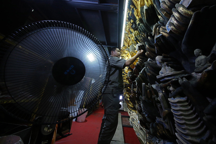 Rainy weather hinders repair of the Thousand-hand Bodhisattva (4)