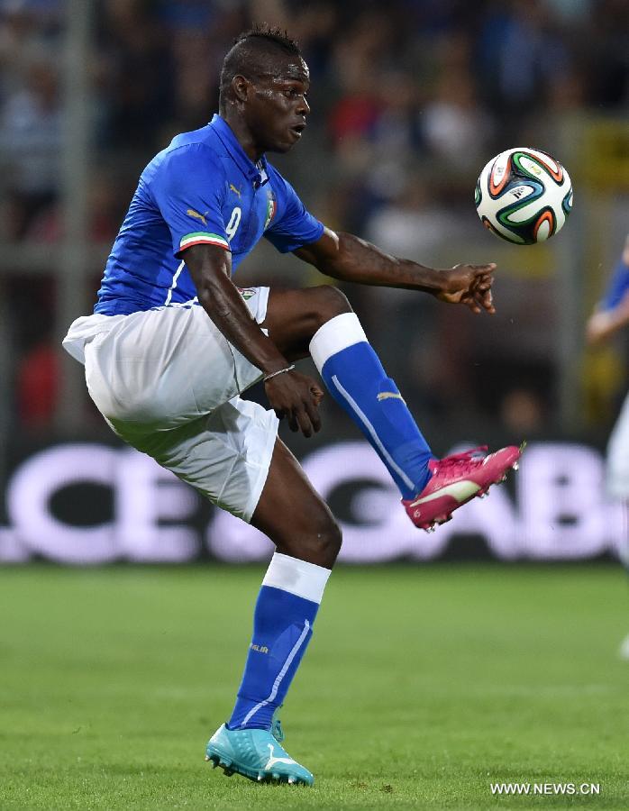 Mario Balotelli of Italy controls the ball during a friendly match against Luxembourg in Perugia, Italy, on June 4, 2014. The match ended with a 1-1 draw. (Xinhua/Alberto Lingria)