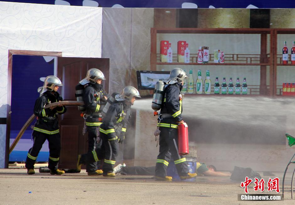 An anti-terrorism drill is held in Yantai, east China's Shandong province on June 5, 2014. The dirll stimulated scenes of explosions, knife attacks and hostage-takings near hotels and schools. SWAT police force, armed police force, fire departments, traffic police, health departments and the power departments joined their efforts to complete exercises including traffic controls, arrests, investigations and detections. (Chinanews.com/Wang Jiaoni)