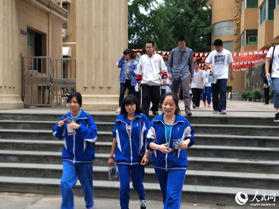 Students leave the exam venue after finishing the National College Entrance Exam (NCEE) in Beijing on June 8, 2014. (People’s Daily Online/ Wang Xin)