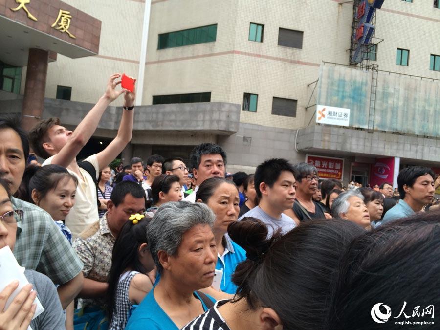 Anxious parents wait outside Beijing Chenjinglun Middle School on the last day of the National College Entrance Exam (NCEE) on June 8, 2014. (People’s Daily Online/ Wang Xin)
