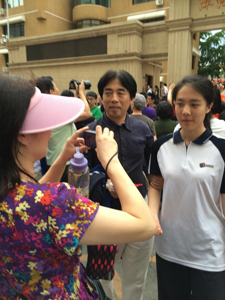 A parent takes photos for his child after finishing the National College Entrance Exam (NCEE) on June 8, 2014. (People’s Daily Online/ Wang Xin)