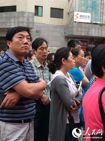Anxious parents wait outside Beijing Chenjinglun Middle School on the last day of the National College Entrance Exam (NCEE) on June 8, 2014. (People’s Daily Online/ Wang Xin)