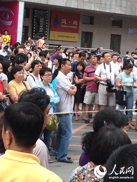 Anxious parents wait outside Beijing Chenjinglun Middle School on the last day of the National College Entrance Exam (NCEE) on June 8, 2014. (People’s Daily Online/ Wang Xin)