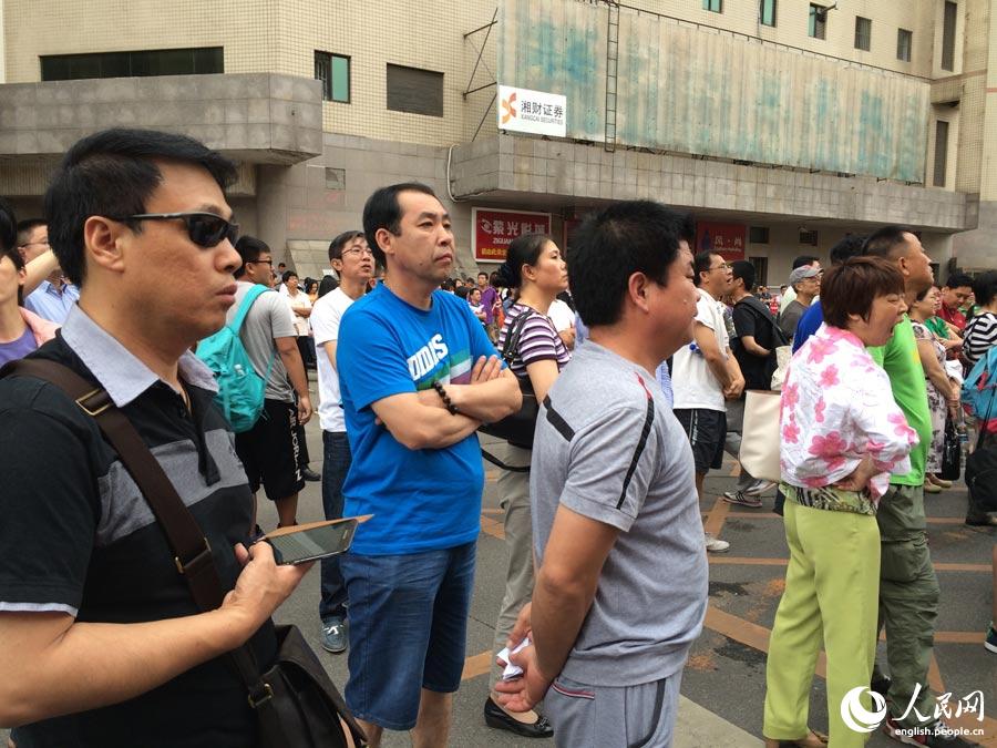 Anxious parents wait outside Beijing Chenjinglun Middle School on the last day of the National College Entrance Exam (NCEE) on June 8, 2014. (People’s Daily Online/ Wang Xin)