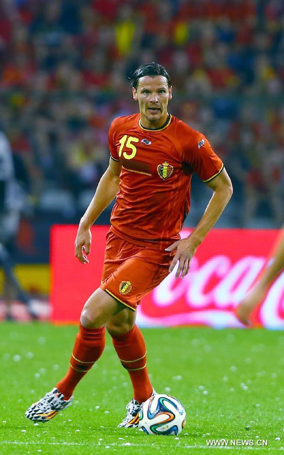 Belgium's Vincent Kompany controls the ball during a friendly soccer match against Tunisia in Brussels, on June 7, 2014. Belgium won 1-0. (Xinhua/Gong Bing)