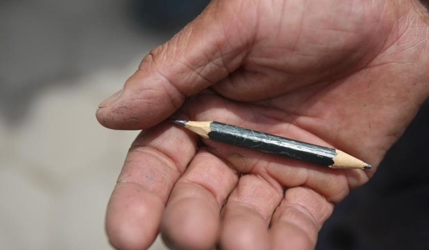 Kang shows his pencil for the exam. (Photo/ Xinhua)