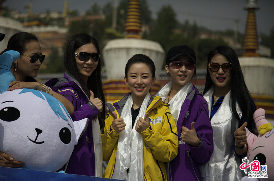 Chinese billiards star Pan Xiaoting attended the blessing ceremony of the first Qinghai Lake Electric Vehicle International Challenge Competition on June 9 in Xining. [Photo by Wu Wenda / China.org.cn]