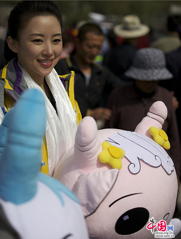 Chinese billiards star Pan Xiaoting attended the blessing ceremony of the first Qinghai Lake Electric Vehicle International Challenge Competition on June 9 in Xining. [Photo by Wu Wenda / China.org.cn]