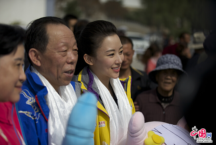 Chinese billiards star Pan Xiaoting attended the blessing ceremony of the first Qinghai Lake Electric Vehicle International Challenge Competition on June 9 in Xining. [Photo by Wu Wenda / China.org.cn]