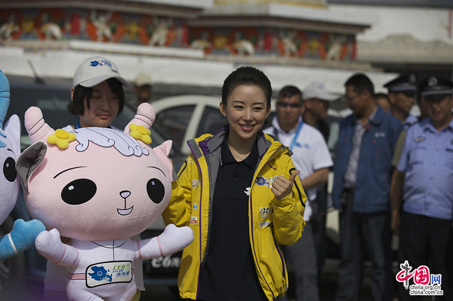 The blessing ceremony of the first Qinghai Lake Electric Vehicle International Challenge Competition was held on June 9 in Xining, capital of Qinghai Province. Pan Xiaoting, a well-known Chinese billiards star, attended the event as the image ambassador of the competition. The challenge competition, which will be held June 8-13 in Xining, is organized by Qinghai provincial government, and sponsored by Qinghai Lake Electric Vehicle International Challenge Competition company and Beijing Automotive Group. [Photo by Wu Wenda / China.org.cn]