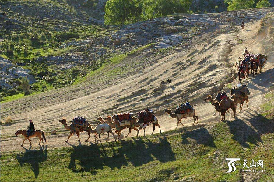 Sheep and cattle are shepherded across grassland during the summer livestock migration in Altay, northwest China’s Xinjiang on June 8, 2014. This year, about 1.5 million cattle and sheep will take 10 days moving to the cooler area in remote mountains in Altay. (Photo/www.ts.cn)