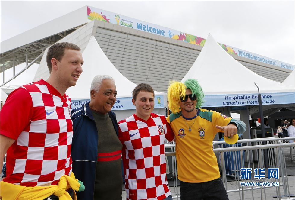 Soccer fans dressed up to pose for photos outside the stadium in Sao Paulo,on Jun 11,2014.(Xinhua/Sao Paolo agency)