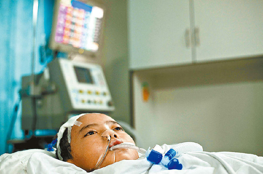 Liang Yaoyi, an eleven-year-old primary student from Shenzhen in China’s southern province of Guangdong, decided to donate his liver and kidneys before brain cancer took his young life. His wish came true on June 6 as his organs saved other lives within eight hours of his death. The nurses applied a thick covering of ointment to his eyes after Liang lost consciousness in the ICU and closed his eyes for the last time. (Photo/Youth.cn)