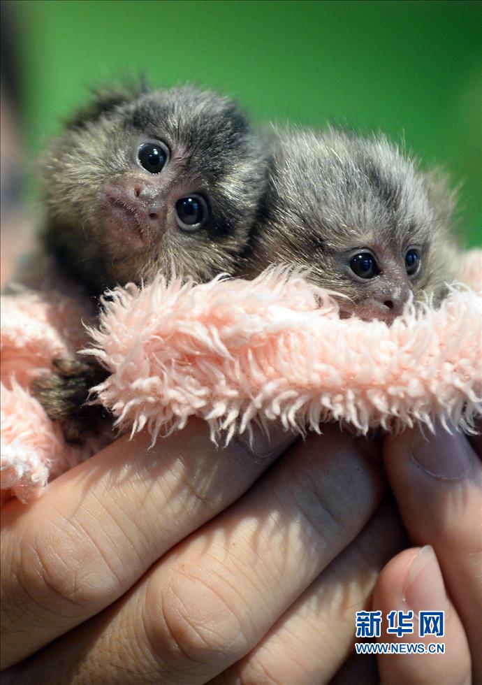 Two newly born pygmy marmosets pose for the media at a zoo in Guangzhou on May 31, 2014. Pygmy marmoset is the smallest monkey in the world native to the rainforests of the Amazon Basin in South America. (Liu Dawei/Xinhua News Agency)