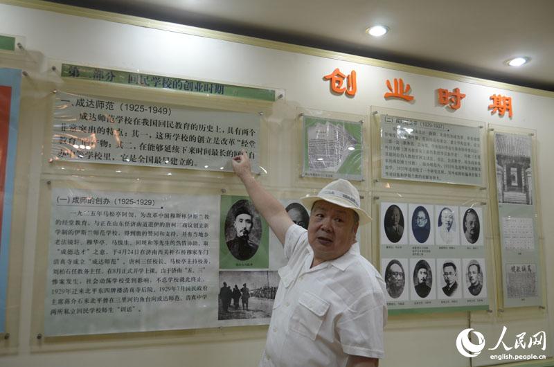 Yu Hongwu, former headmaster of Beijing Huimin School, introduces the history of Beijing Huimin School, June 3, 2014. (People's Daily Online/Du Mingming)