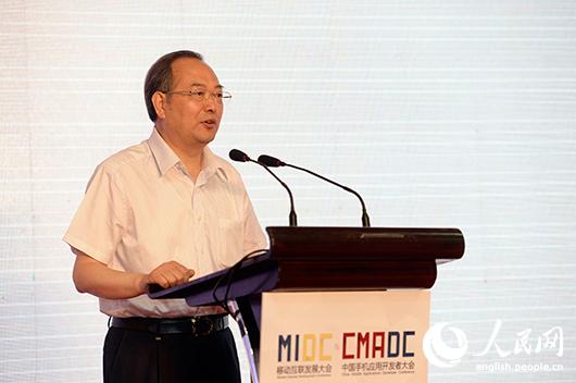 | President of People’s Daily Yang Zhenwu gives speech at 2014 Mobile Internet Development conference in Beijing on June 12, 2014. (Photo/ People's Daily Online) |