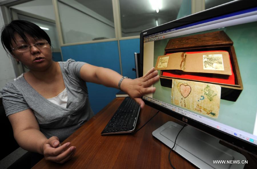 A staff member presents 16 photos about the Nanjing Massacre at the Second Historical Archives of China in Nanjing, capital of east China's Jiangsu Province, June 12, 2014. China is applying to UNESCO to list 11 sets of documents relating to the 1937 Nanjing Massacre on the Memory of the World Register. The documents, which include diaries, films, photographs and testimonies, depict the brutality of Japanese invaders in the massacre. (Xinhua/Han Yuqing)