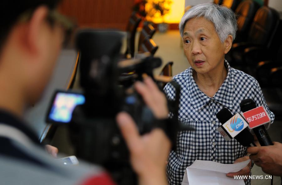 Former researcher Hu Jurong introduces her research on the files of the Nanjing Massacre at the Second Historical Archives of China in Nanjing, capital of east China's Jiangsu Province, June 12, 2014. China is applying to UNESCO to list 11 sets of documents relating to the 1937 Nanjing Massacre on the Memory of the World Register. The documents, which include diaries, films, photographs and testimonies, depict the brutality of Japanese invaders in the massacre. (Xinhua/Han Yuqing)