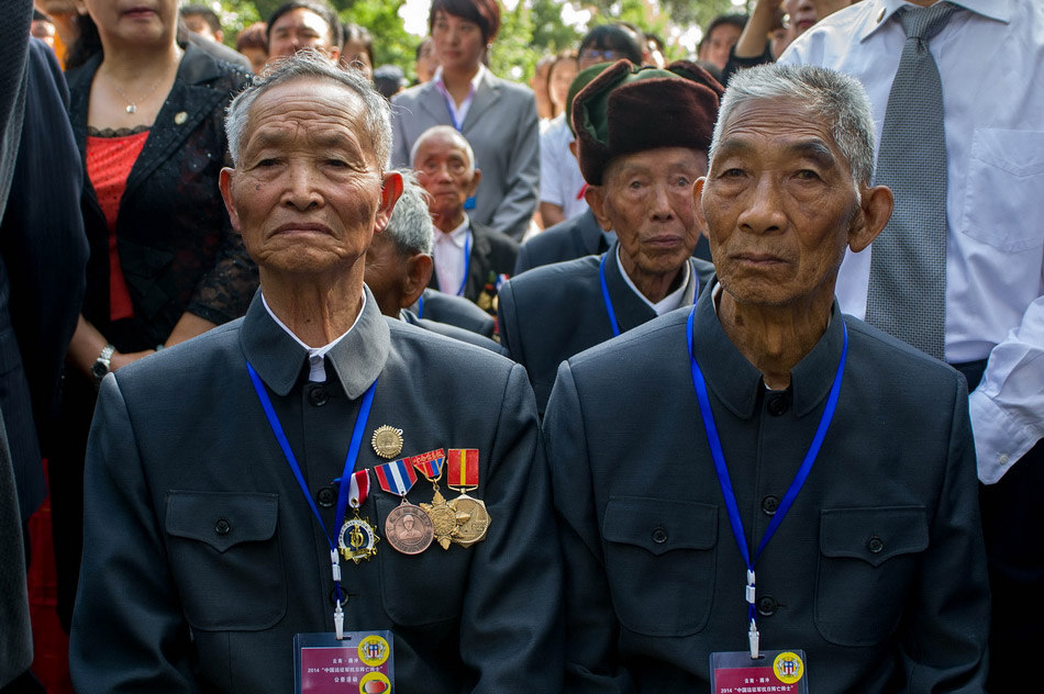 | Several veterans of Chinese Expeditionary Force attend the ceremony of reburial on June 12. (Xinhua/Hu Chao) |
