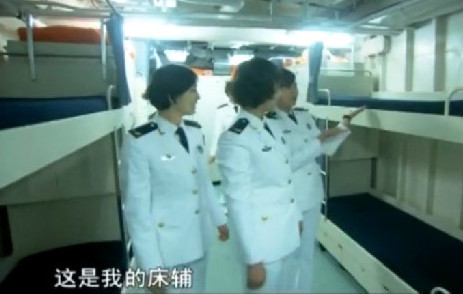 Xinjiang TV station visited the Liaoning aircraft carrier recently, showing the female crew’s daily life and cabins in their TV program. The Liaoning is China's only aircraft carrier in operation. It was refitted based on an unfinished carrier of the former Soviet Union. The refitted carrier was delivered to the navy on Sept. 25, 2012. (Source: Xinjiang TV station)