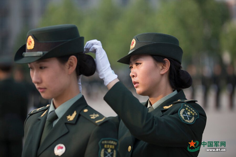 Clad in skirts, riding boots and hair pulled back into the classic chignon, female People’s Liberation Army honor guards have attracted the attention of the world since they made debut on May 12. Their knee-high skirts and five-centimeter heels singled them out from the rows and rows of sober, hunter-green uniforms of male soldiers. (Photo source: 81.cn)