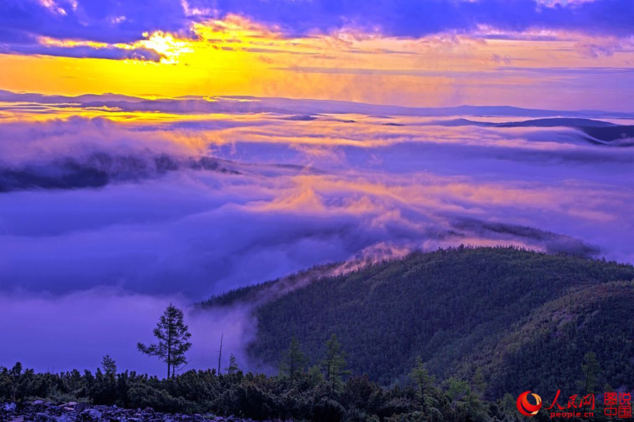 With an altitude of 1,404 meters, the Small Bule Mountain is the second highest among the Greater Khingan Mountains in northeast China. Amid the morning fog, the huge red sun rises. What a spectacular sight!(People's Daily Online)