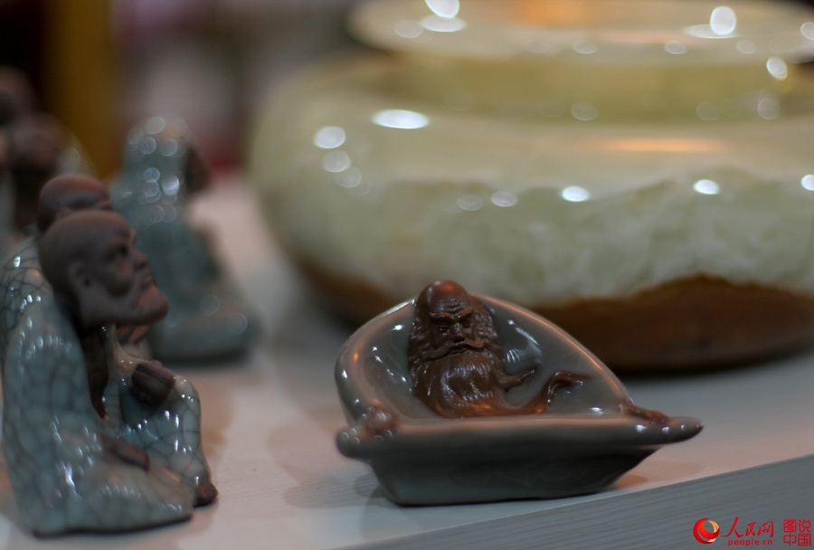 A tea pet is the pet kept by tea lovers and nourished by tea water. It is a kind of artware made by purple sands or clay. When enjoying the tea, the drinker will smear or sprinkle tea water on the tea pets. As time goes by, the tea pets will be moist with soft luster and tea aroma. Tea pets usually take the shape of mythical Chinese beasts, human figures and small animals to express good wishes.(People's Daily Online)