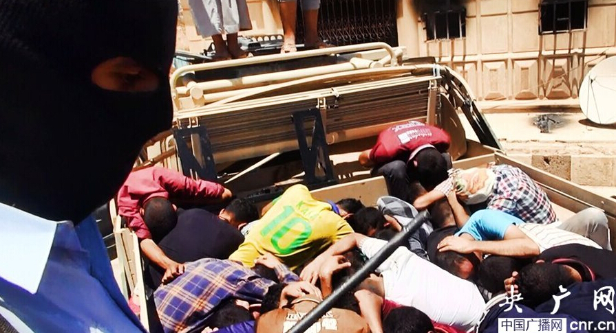 An image uploaded on June 14, 2014 on the jihadist website Welayat Salahuddin allegedly shows militants of the Islamic State of Iraq and the Levant (ISIL) executing dozens of captured Iraqi security forces members at an unknown location in the Salaheddin province. A major offensive spearheaded by ISIL but also involving supporters of executed dictator Saddam Hussein has overrun all of one province and chunks of three others since it was launched on June 9. [Photo/Cnr.cn]