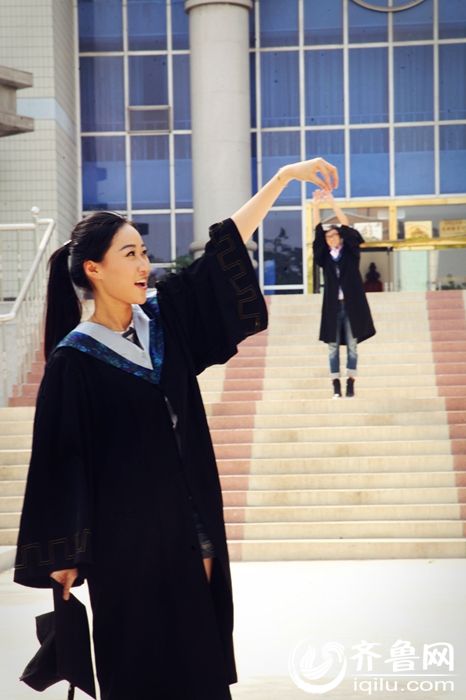 Two Shandong college graduates take creative photos to mark their love. (iqilu.com)