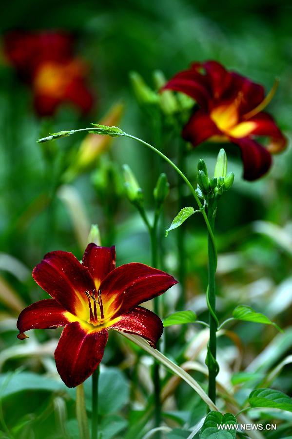 Photo taken on June 18, 2014 shows lilies in blossom at Quancheng Park in Jinan, capital of east China's Shandong Province. (Xinhua/Guo Xulei)