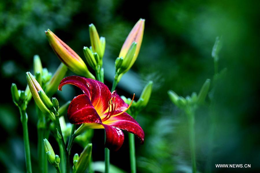 Photo taken on June 18, 2014 shows a lily in blossom at Quancheng Park in Jinan, capital of east China's Shandong Province. (Xinhua/Guo Xulei)