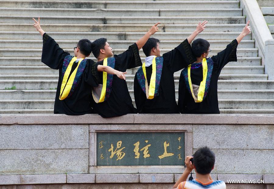 Graduates pose for photo at Xiamen University in Xiamen, southeast China's Fujian Province, June 18, 2014. Some 8,000 students will graduate from the university this year. (Xinhua/Jiang Kehong)