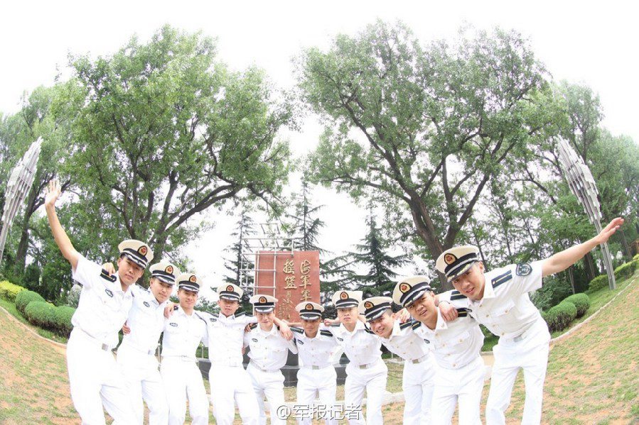 | Cadets in PLA Dalian Naval Academy posed for photos at the conclusion of the graduation ceremony. (Photo source: Jie Fang Jun Bao) |