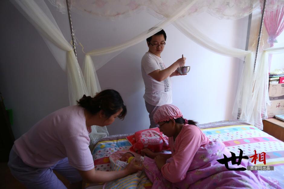 Liu’s mother and wife take care of the baby. (Photo/cnwest)