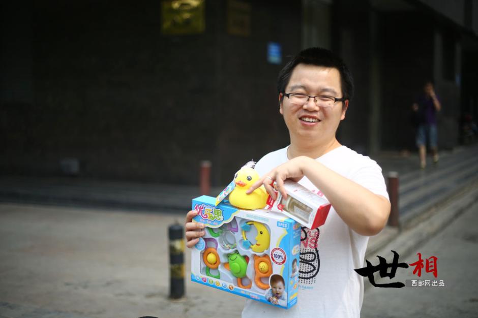 Liu buys toys as gift for his baby on June 1, the International Children Day. (Photo/cnwest)