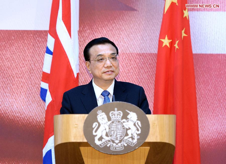Chinese Premier Li Keqiang addresses the UK-China Financial Forum in London, capital of Britain, June 18, 2014. (Xinhua/Li Tao)