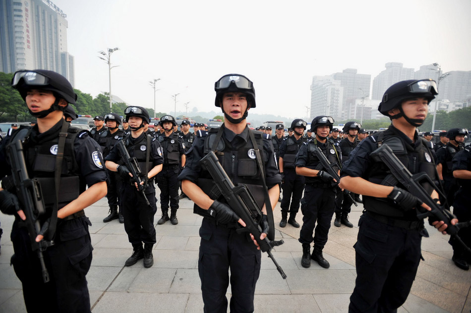Members of the SWAT anti-terrorism mobile emergency team, June 12, 2014. (Xinhua/Shi Wei)