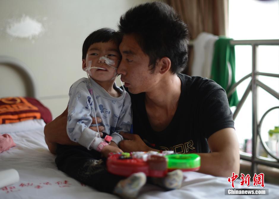 Wang Zhihua tells stories to cheer his daughter up in the ward on May 23, 2014.(CNS/ Wei Liang)