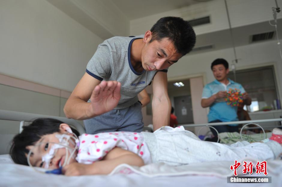 The father knocks gently on his daughter’s back to help her digest food.(CNS/ Wei Liang)