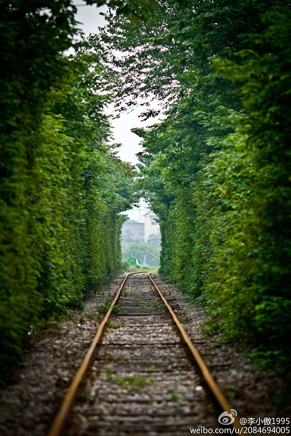 The photo shows a railroad surrounded by dense foliage in Nanjing, capital of east China's Jiangsu Province. It's been praised online as the "most naturally beautiful" railroad in Nanjing by netizens. [Photo: weibo.com]