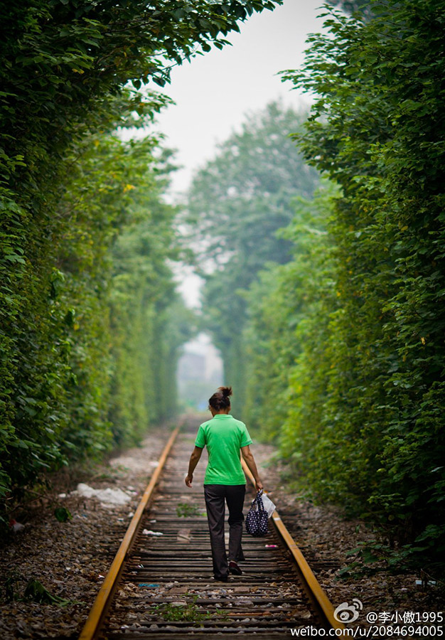 The photo shows a railroad surrounded by dense foliage in Nanjing, capital of east China's Jiangsu Province. It's been praised online as the "most naturally beautiful" railroad in Nanjing by netizens. [Photo: weibo.com]