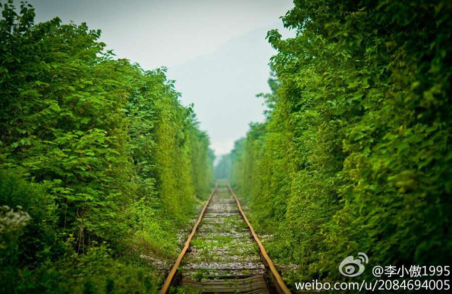 A group of photos featuring a railroad path surrounded by dense foliage in Nanjing, capital of east China's Jiangsu province, went viral online on June 18, 2014, china.com.cn reports.