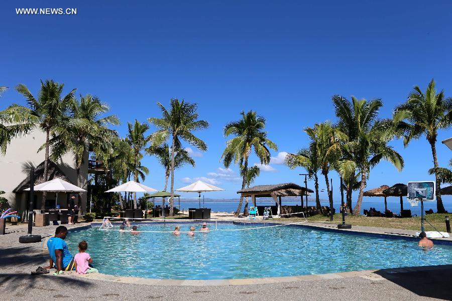 Tourists are seen at a hotel in Nadi, Fiji, June 18, 2014. Nadi is located on the west of the island Viti Levu in Fiji. (Xinhua/Li Peng)